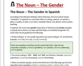 Gender Of Nouns In Spanish Lesson Etsy